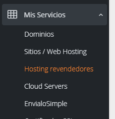 2- En el menú de la izquierda entrar a Hosting revendedores
