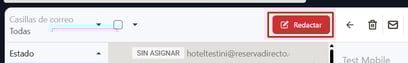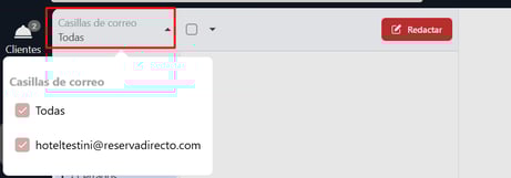 En la esquina superior izquierda encontrarás un desplegable que permite visualizar todas las casillas de correo configuradas para la propiedad. Desde allí, puedes elegir ver una casilla específica o todas en conjunto.