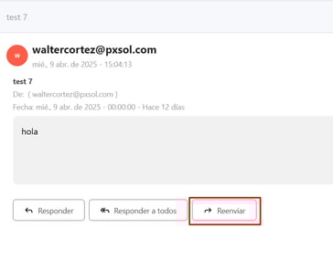 Al seleccionar Reenviar, se abrirá una sección que mostrará: