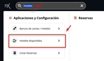 Desde el Omnibox, buscando directamente Hoteles Disponibles.