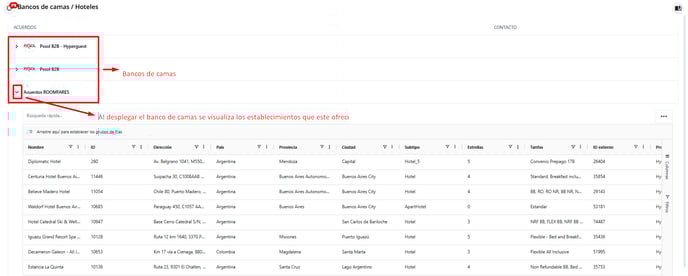 A través de esta aplicación, la agencia puede consultar los acuerdos vigentes con los bancos de camas, así como los establecimientos de alojamiento que estos ofrecen y que están accesibles en el punto de venta de mi agencia.
