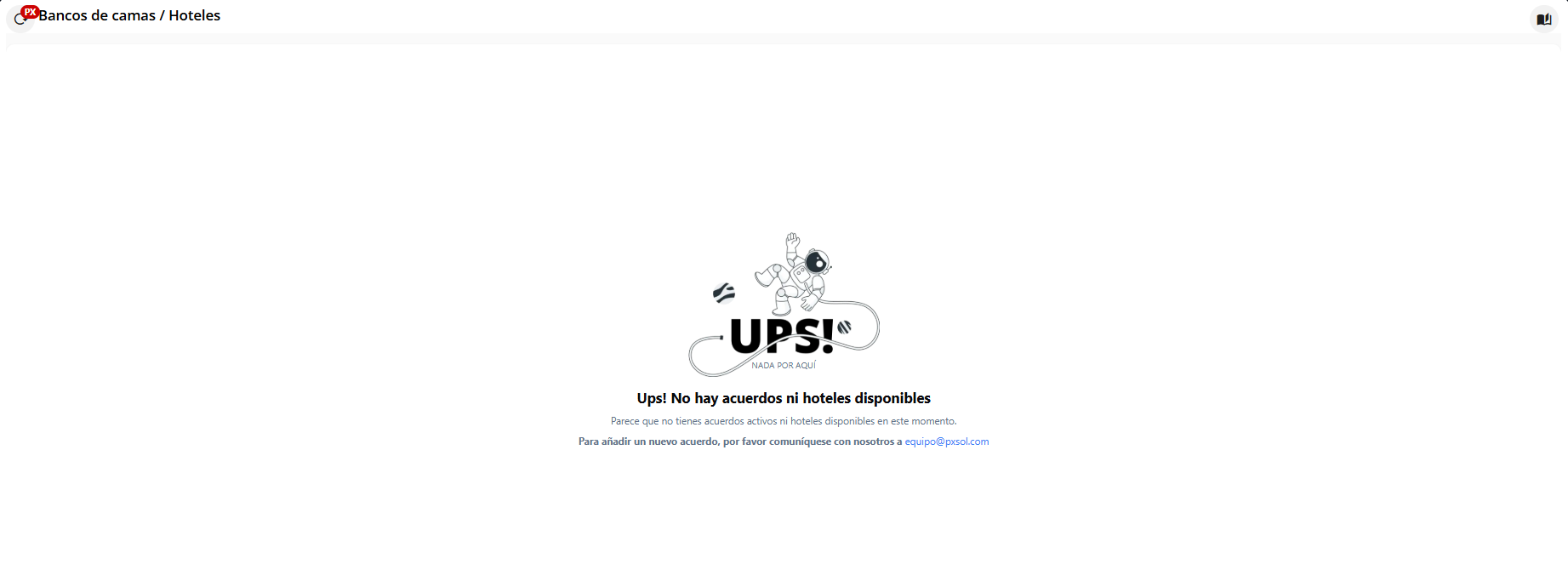 En el caso de no contar con un acuerdo activo con un banco de cama u hotel se visualizará de la siguiente manera: