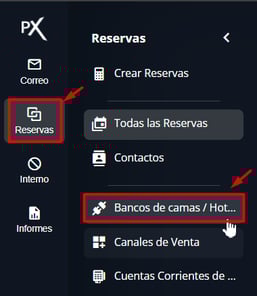 B - Mediante el menú lateral, seleccionando el Hub "Reservas" y luego "Banco de camas / Hoteles".