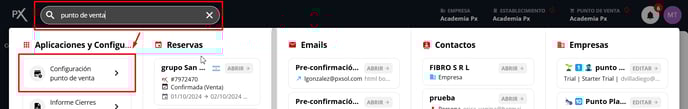 Desde el Omnibox, que es la barra de búsqueda y navegación situada en la parte superior de la pantalla, podemos acceder a la aplicación "Configuración punto de venta". Esta aplicación permite personalizar y optimizar la configuración del punto de venta.