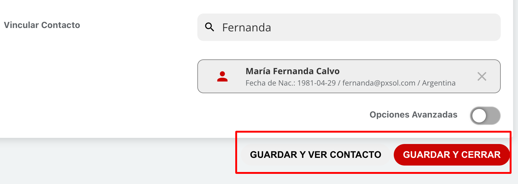 6- Hacer click en Guardar y Cerrar o en Guardar y ver contacto