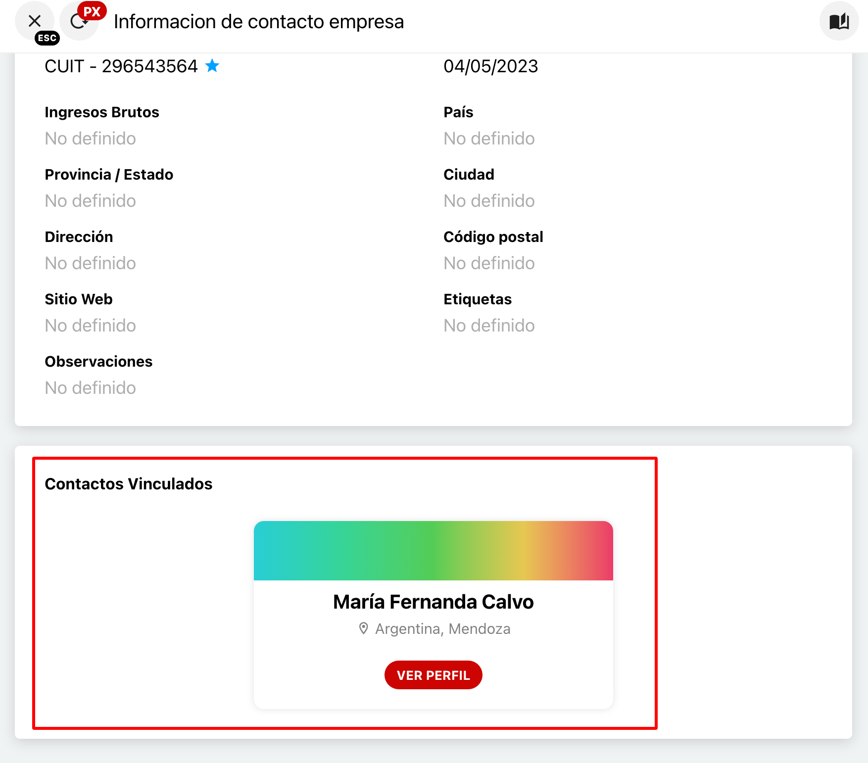 En la tarjetita del contacto ya podrán visualizar el contacto vinculado