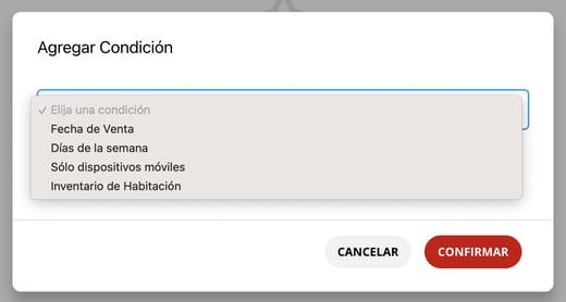 Esto mostrará un select donde podrás seleccionar la condición que quieras ir agregando
