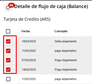 5- Seleccionar todos los movimientos que deseamos Anular o Auditar