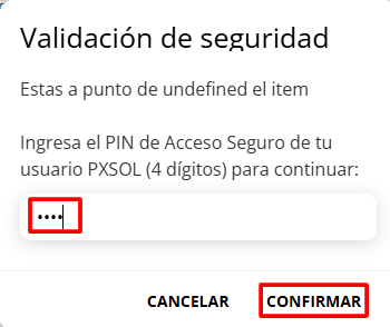 7- Se abrirá una venta que solicitará que agregue el PIN de su usuario y luego Confirma