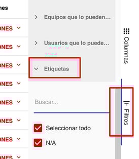 o podrás usar los filtros desde el menú lateral de lista y poner los filtros que necesites para encontrar el informe que buscas, por ejemplo el nombre de la etiqueta
