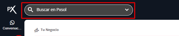 1- Dentro de Pxsol, en la parte superior de la pantalla encontrará el buscador.