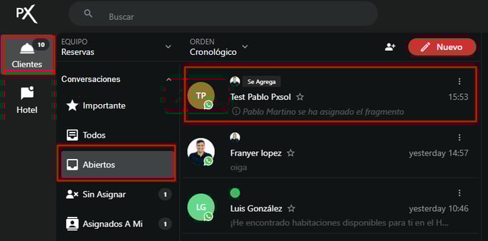 3- Las nuevas conversaciones entrantes, llegarán a la carpeta Sin asignar