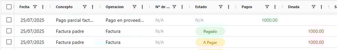 Se generará una factura y el pago correspondiente en esta cuenta Proveedor con los datos cargados y se recalculará el saldo de la cuenta.
