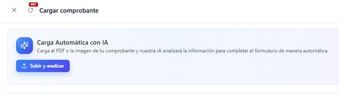4.1 - Subir el pdf o jpg de la factura: Es opcional, si lo desea puede subir el pdf de la factura para que el sistema, utilizando IA, complete todos los campos o los campos seleccionados del formulario, leyendo el PDF.