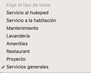 Tipo (Opcional): Seleccionar uno de los siguientes tipos de tarea. Si no selecciona ninguno quedará como Servicios generales