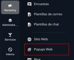 1- Acceder desde el menú lateral a la aplicación Marketing - Popups Web