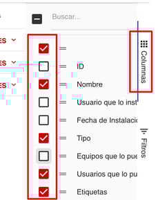2- Una vez seleccionadas las columnas, podrás darles orden arrastrando con el mouse desde la parte superior de la lista.