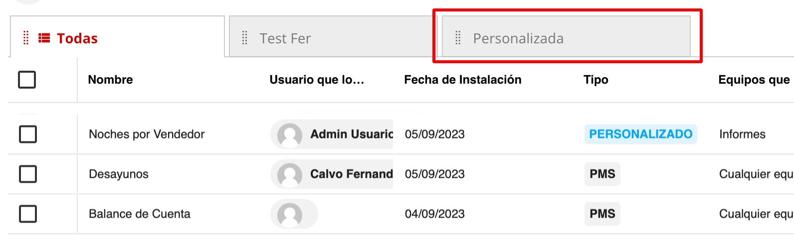 8- Tu vista personalizada aparecerá al final de tu menú de vistas, pero podrás ordenarla como desees arrastrando con el mouse sobre los puntitos
