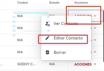 3- Editar el contacto al que queremos agregar el acuerdo desde el menú de acciones del contacto