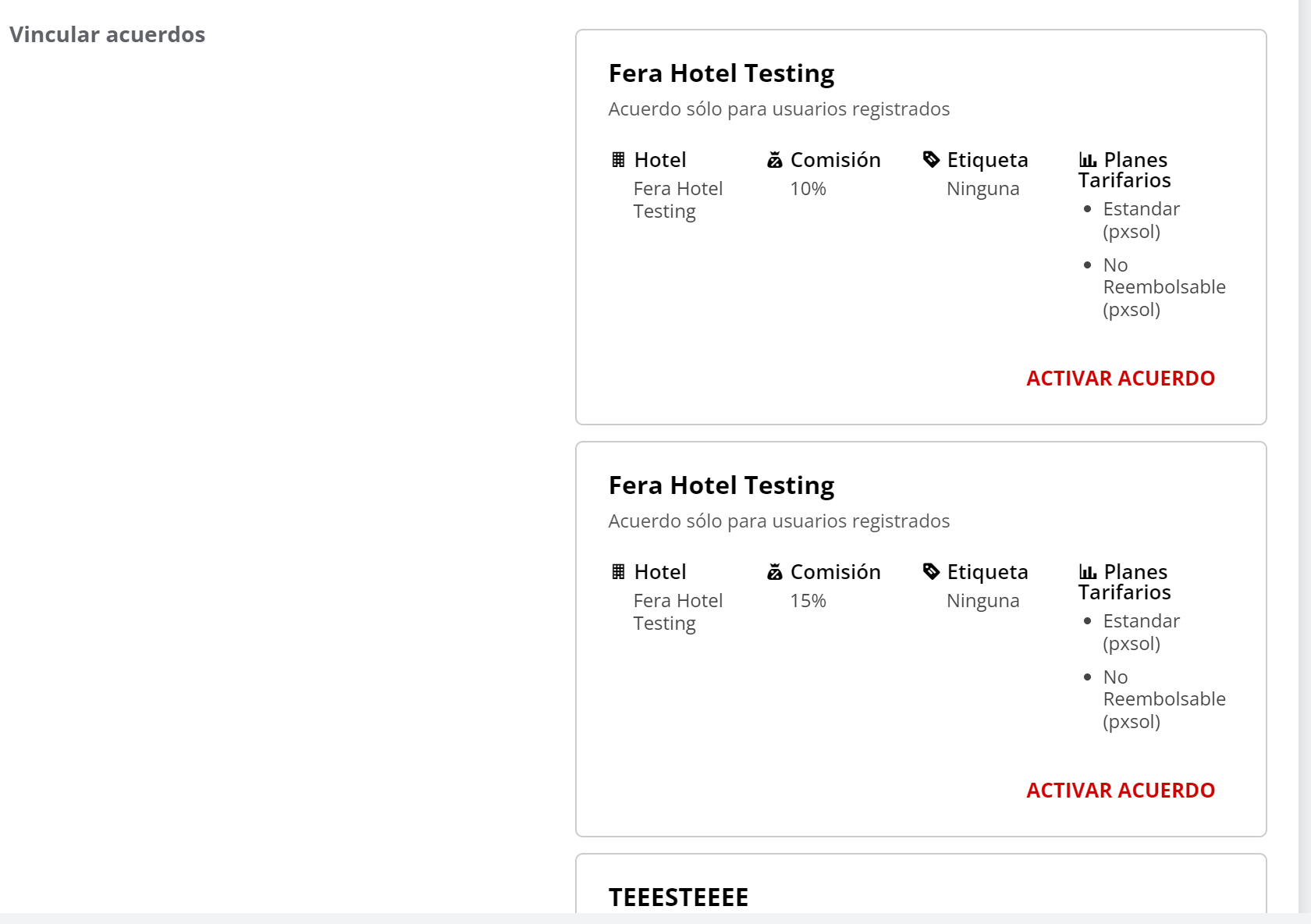 4- En la parte inferior encontraremos todos los Acuerdos que tenemos disponibles para vincular al contacto. Hacer click en Activar Acuerdo en los acuerdos que desee vincular al contacto