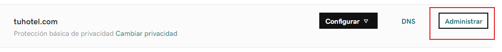 3- En el listado de sus dominios comprados ir a Administrar el dominio que vamos a delegar