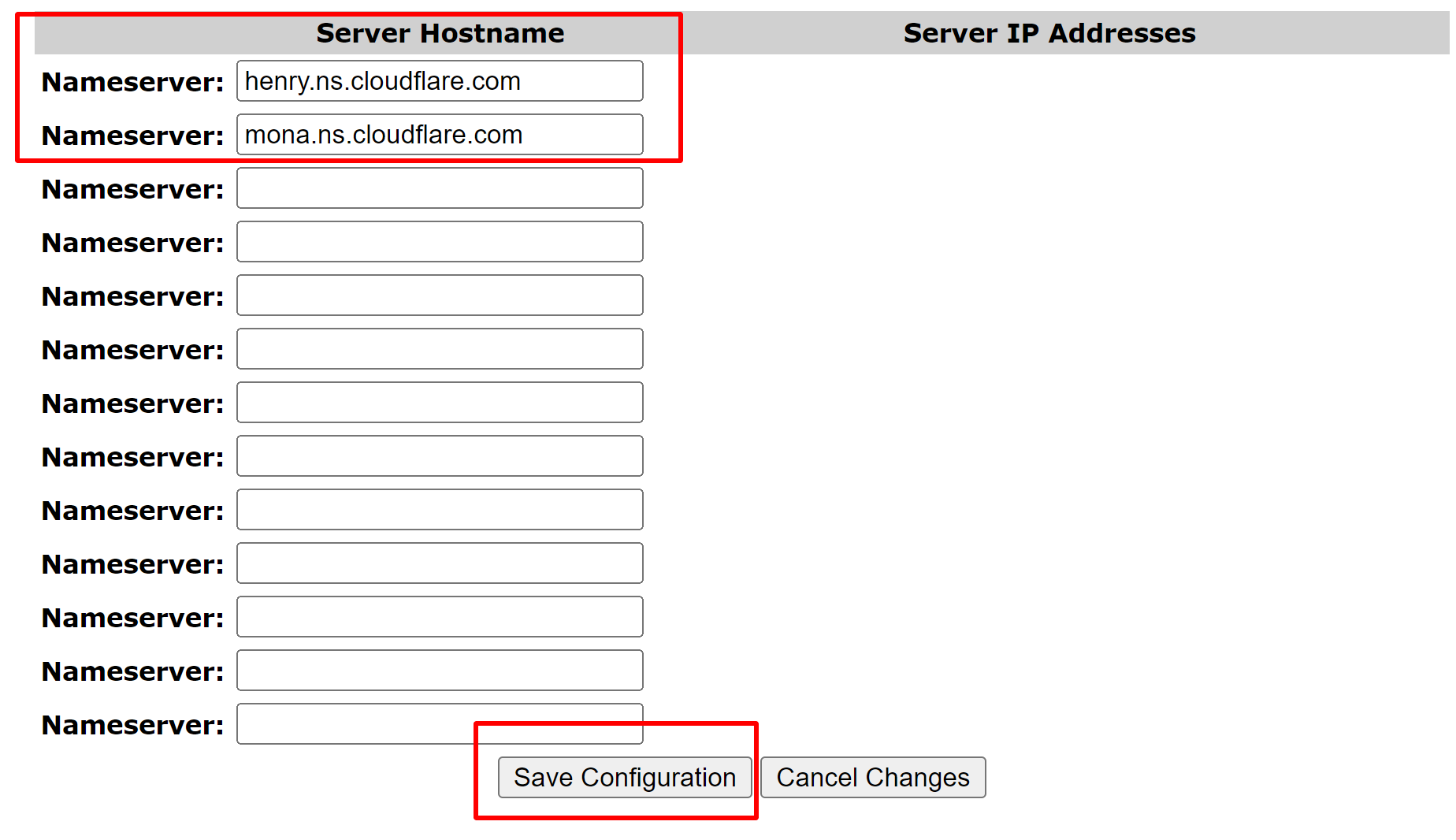 MUY IMPORTANTE: Todos los servidores de nombre que no sean los de cloudflare deben quedar borrados de su tabla