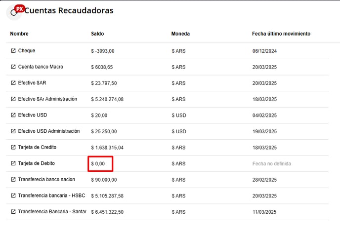 3- Revisar que el saldo de la Cuenta Recaudadora que se quiere eliminar esté en 0