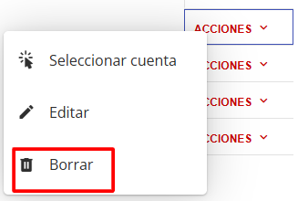 4- Si la cuenta se encuentra en 0 deberá seleccionar Acciones - Borrar