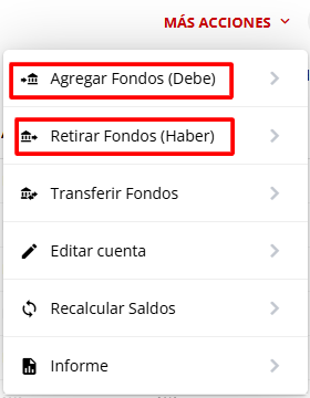 7- Una vez dentro de la cuenta, deberá generar un movimiento para Agregar Fondos o Retirar fondos según corresponda para dejar la cuenta en 0