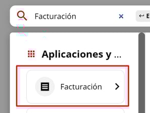 2- Dirigirse al omnibox que está en la parte superior de la plataforma, En la búsqueda poner Facturación y luego hacer click en la aplicación de Facturación