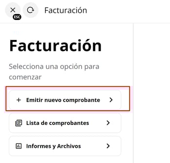 3- En la ventana que se abre encontrarán a la izquierda un menú. Hacer click en el botón Emitir nuevo comprobante