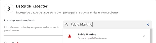 Pueden buscar un contacto de la base de datos de Pxsol para autocompletar los campos que tenga guardados ese contacto.