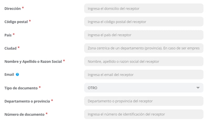 - Completar los datos del Receptor: