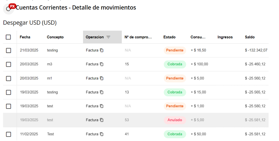 En esta guía explicaremos cómo realizar filtros en una cuenta corriente para ver ciertos movimientos, por ejemplo: Facturas pendientes de Cobrar.