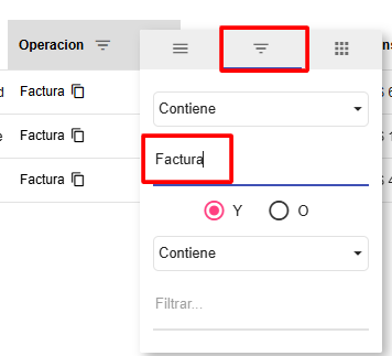 5- Sobre cada columna, al apoyar el cursor, permitirá acceder a configuraciones de la columna. Seleccionar luego, Filtros y aplicar el filtro correspondiente.