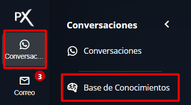 1- Desde el menú principal, buscar dentro de Conversaciones, la aplicación Base de Conocimientos y hacer click para abrir la aplicación:
