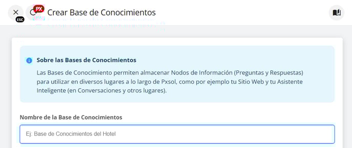 3- Se despliega una ventana. Colocar primero en Nombre de la Base de Conocimientos.