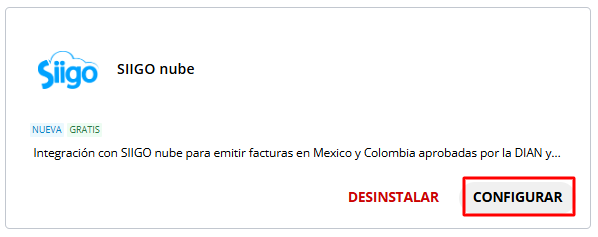2- Sobre la Tarjeta de SIIGO nube seleccionar Configurar (solo aparece si ya se encuentra instalado).