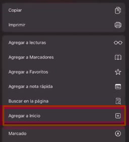 2- Una vez logueado, en la barra inferior hacer click en el iconito de compartir y luego seleccionar la opción Agregar a Inicio