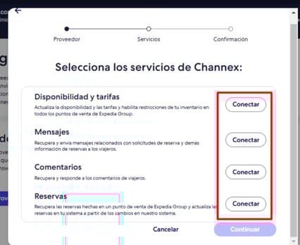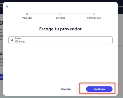 - Deberás seleccionar el proveedor Channex: