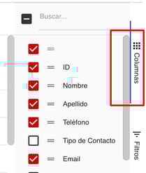 2- Personaliza las columnas que quieres que muestre tu vista personalizada con la opción Columnas dentro del Menú de personalización ubicado a la derecha de tu lista.