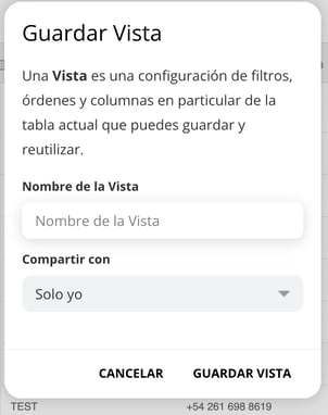 Allí también indicarás el nombre de tu vista personalizada y si la vista debe estar disponible solamente para tu usuario o para todos los usuarios del hotel
