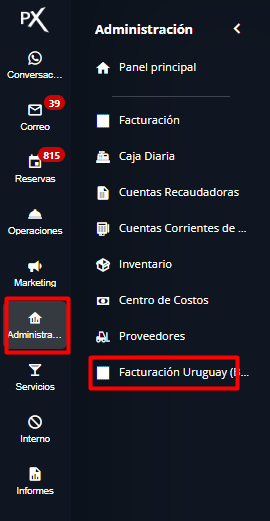 2- Dirigirse a la sección Administración. Luego seleccionar Facturación Uruguay.