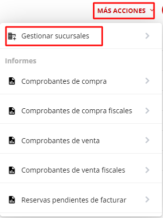 3- En la ventana seleccionar Acciones - Gestionar Sucursales.