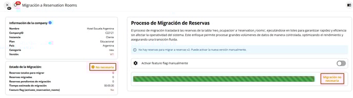 En las empresas que no tengan Reservas figurará Migración No Necesaria. Pero podrá encenderse igualmente para que cuando ingresen nuevas reservas, éstas ingresen con la nueva versión.