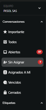3- Las nuevas conversaciones entrantes, llegarán a la carpeta Sin asignar