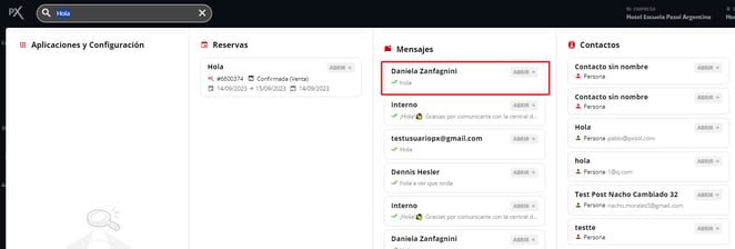 Nota: cliqueando sobre el ítem buscado se abrirá una ventana con la aplicación, reserva o correo que precise visualizar.