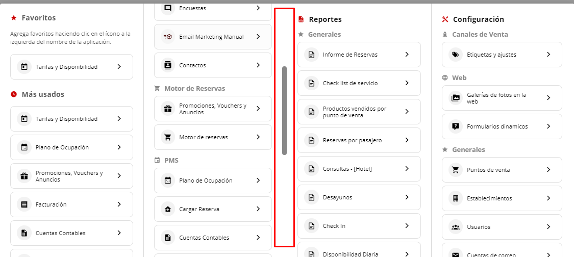4- En la primer columna de la derecha se visualizarán las aplicaciones más utilizadas y las favoritas, que podrá ir configurando cliqueando sobre el ícono de cada módulo:
