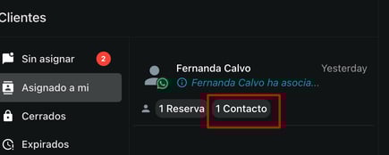¿Cómo ver si el chat con un cliente dentro de Conversaciones ya tiene un contacto asociado?