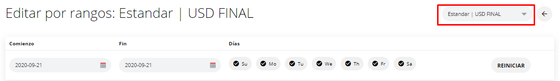 6- Seleccionar los rangos de fecha que desean editar para dejar abiertos o cerrados a la venta.